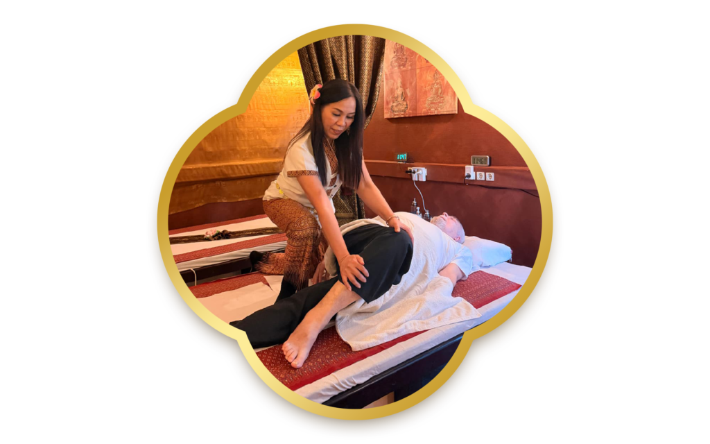 Dynamisch, kraftvoll, vom Kopf über die Fingerspitzen bis zu den Füßen, das ist unsere traditionelle Thai Massage. Sie ist eine ganzheitliche Therapieform. Mit dem Begriff “Thai Massage” (Thai-Yoga-Massage bzw. „Nuad Thai”) ist nicht erwartungsgemäß die Bedeutung von europäischer anatomischer Massage verbunden. Vielmehr handelt es sich um eine ursprünglich aus Thailand stammende, ganzheitliche Behandlungsmethode.